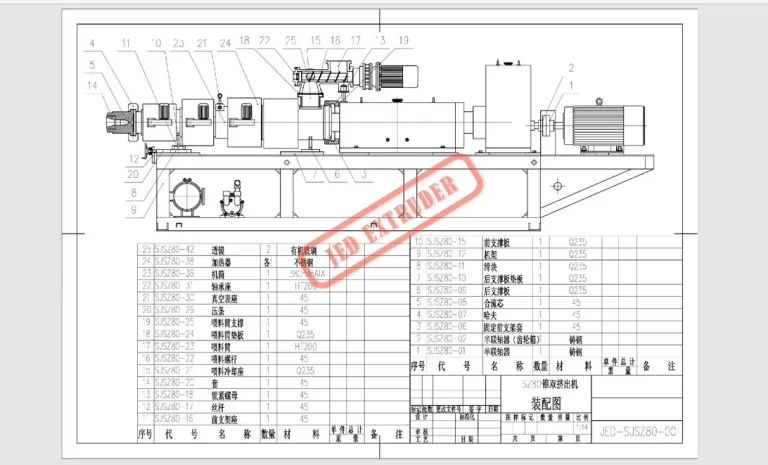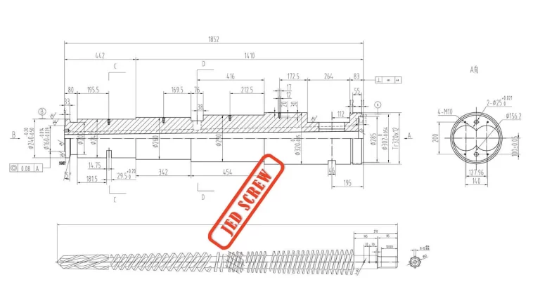 80-156 Conical twin screw and barrel machining drawing for foam extrusion.